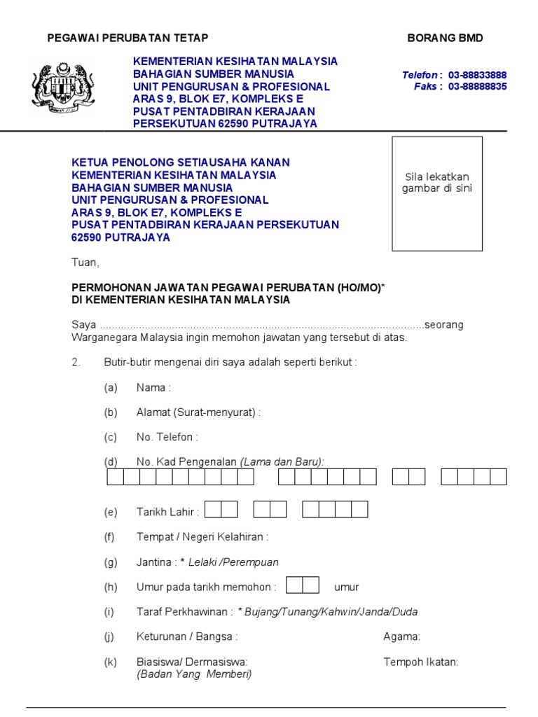 Permohonan Jawatan Kosong Kementerian Kesihatan Malaysia.