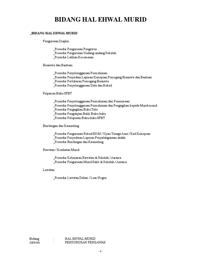 Manual Prosedur Hal Ehwal Murid