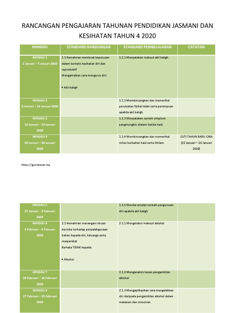 1 Januari 5 Januari 2020 dalam konteks kesihatan. Sempena tahun 2018 yang akan tiba tidak lama lagi panitia pendidikan jasmani dan pendidikan kesihatan skfr ingin berkongsi rancangan pelajaran tahunan rpt.